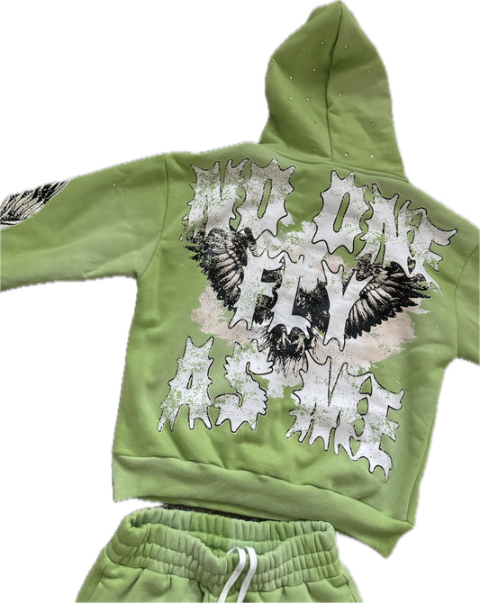 Green luxury garments rhinestone hoodie